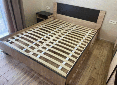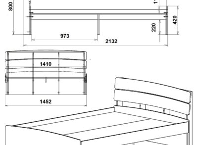 Размеры кровати: Ширина: 152 см. Высота: 80 см. Длина: 206 см. Размеры спального места кровати: Ширина: 140 см. Длина: 200 см. Материалы кровати: дерево бук Цвета кровати: Орех.