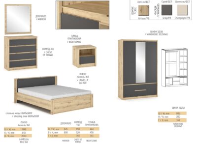 Размеры элементов спальни «Аляска» (все элементы спальни продаются по отдельности):